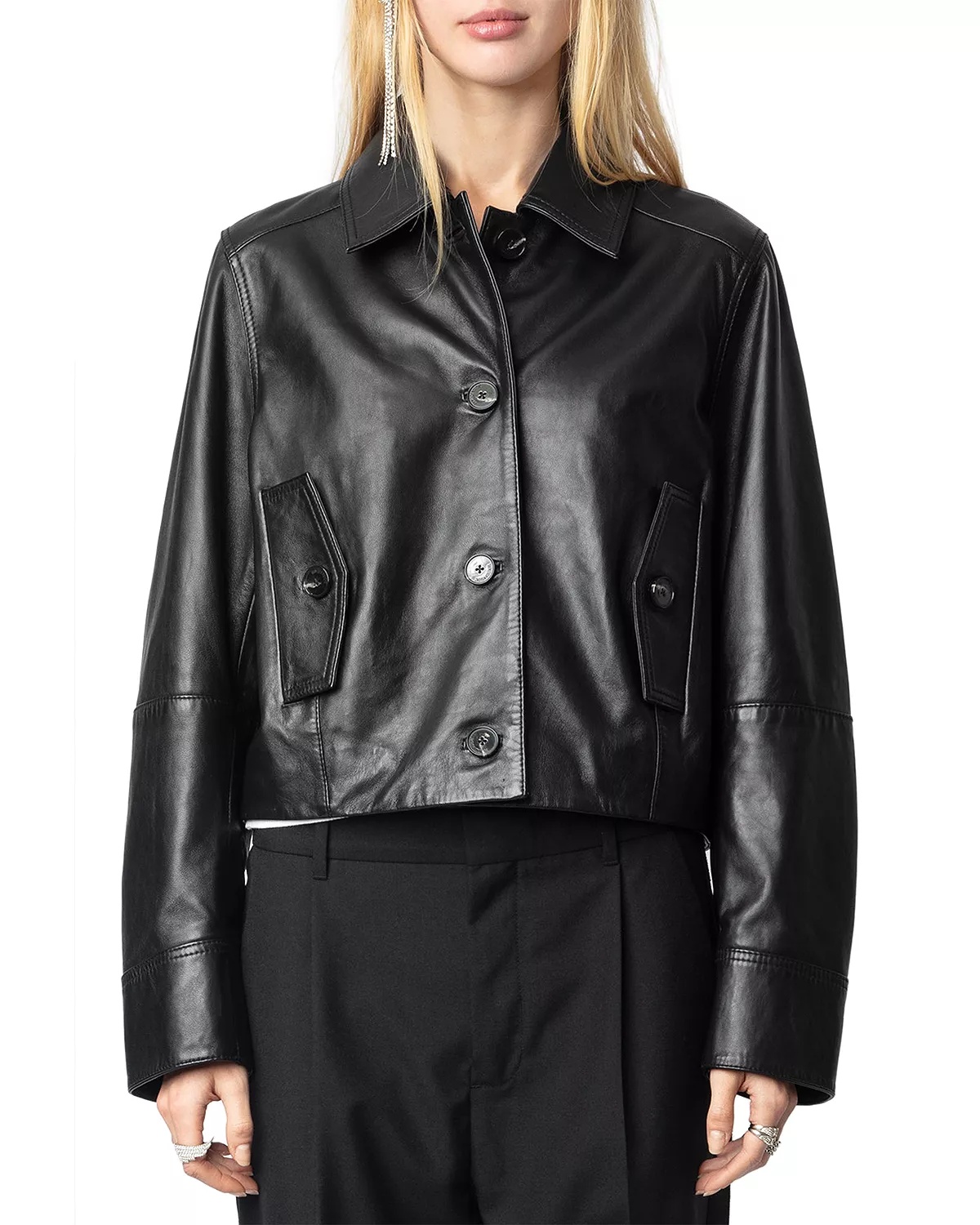 Liston Cropped Black Leather Jacket