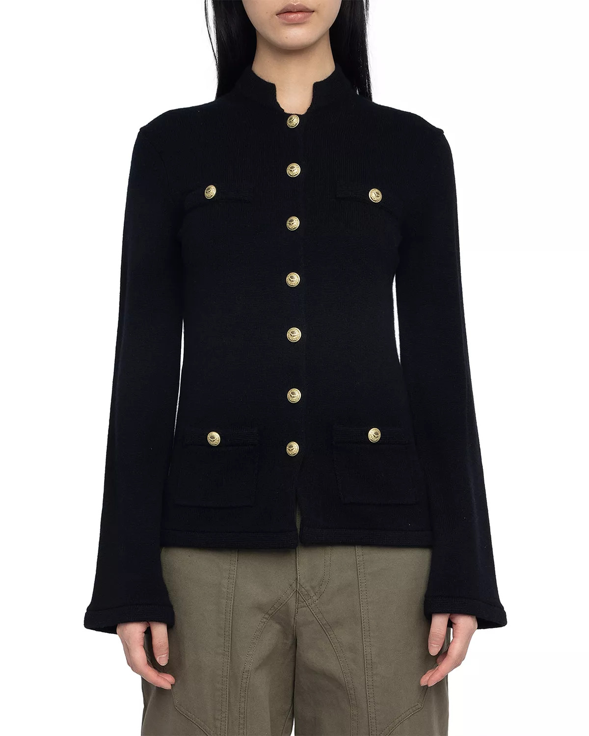 SIZE & FIT - Fits true to size, order your normal size - Designed for a relaxed fit PRODUCT DETAILS - High collar - Button front closures - Long sleeves - Button welt pockets at chest - Button patch pockets at front - Imported Web ID: 5577146 MATERIAL & CARE - 90% wool/10% cashmere - Hand wash