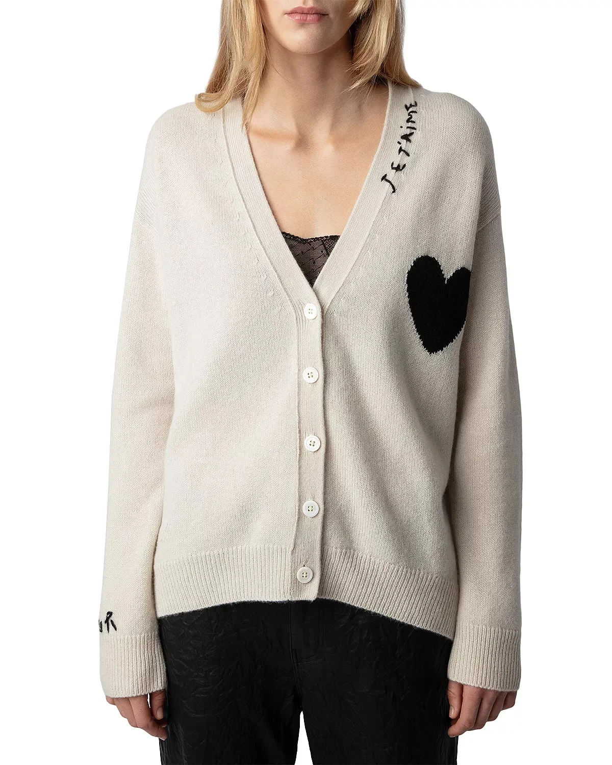 SIZE & FIT - Fits true to size, order your normal size PRODUCT DETAILS - V-neck - Long sleeves - Front button closures - Designed with motifs and slogans - Imported Web ID: 4959059 MATERIAL & CARE - 100% cashmere - Hand wash or machine wash