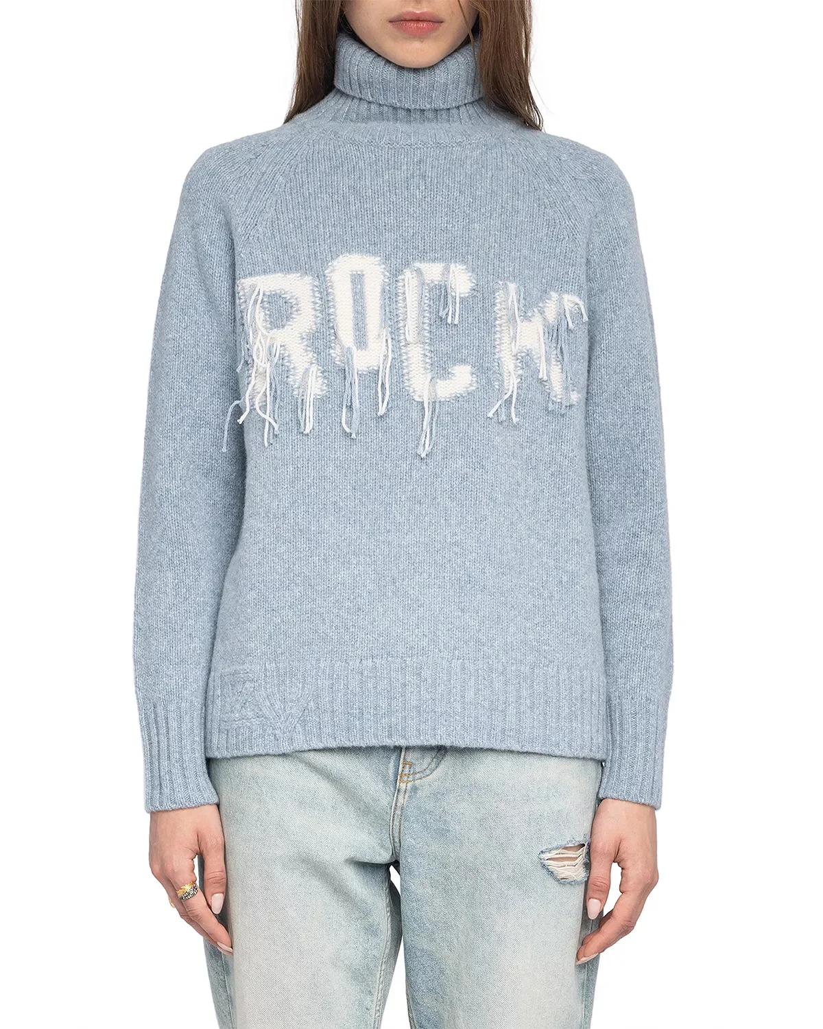 SIZE & FIT - Fits true to size, order your normal size PRODUCT DETAILS - Foldover turtleneck - Long raglan sleeves - Intarsia lettering with cascading-yarn detail at chest - Ribbed trim at neck, cuffs, and hem - Imported Web ID: 5783574 MATERIAL & CARE - 100% merino wool - Machine wash or hand wash