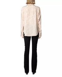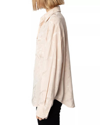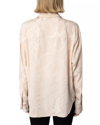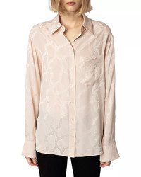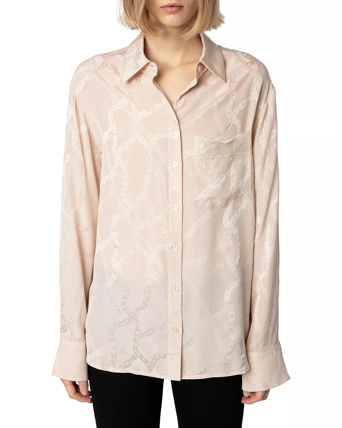 SIZE & FIT - Fits true to size, order your normal size PRODUCT DETAILS - Point collar - Long sleeves - Front button closures - Powder pink silk lingerie-style shirt - Jacquard chains - Chest pocket embellished with lace - Imported Web ID: 5381578 MATERIAL & CARE - 100% silk - Hand wash or machine wash
