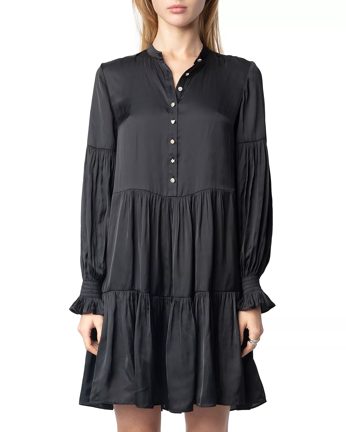 SIZE & FIT - Fits true to size, order your normal size - Designed to hit above the knee PRODUCT DETAILS - Split V-neck - Long sleeves with smocked cuffs - Front button closures - Tiered silhouette - Please note that this dress will be delivered with a black b-tag attached, with instructions for removal included. If the b-tag is removed, the dress cannot be returned. - Imported Web ID: 5381530 MATERIAL & CARE - 100% polyester - Hand wash