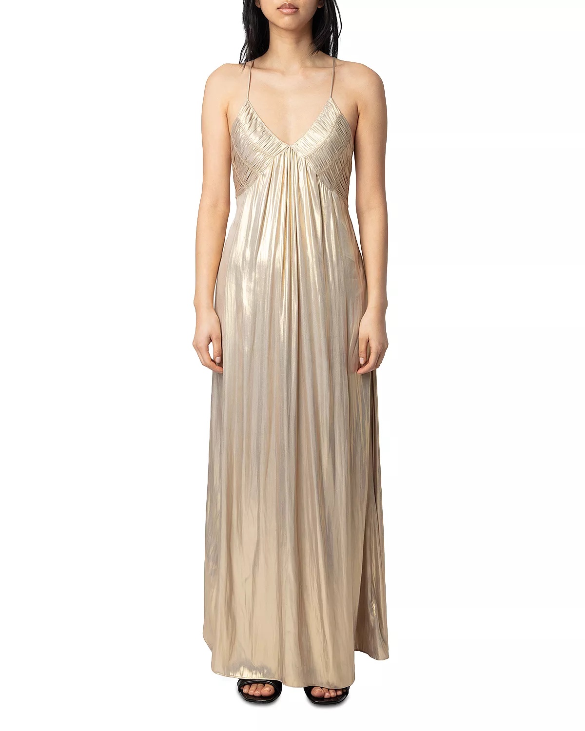 SIZE & FIT - Fits true to size, order your normal size - Designed for a floor-length look PRODUCT DETAILS - V-neck - Gathered details at bodice and back - Sleeveless with adjustable cross-back straps - Lingerie inspired design - Imported Web ID: 5381542 MATERIAL & CARE - 100% polyester - Hand wash