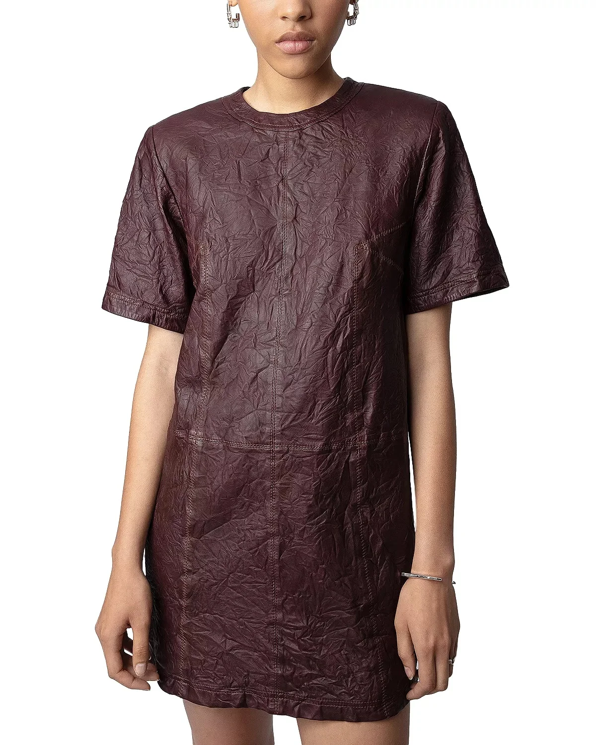 Riddy Cuir Froisse Textured Leather Tee Dress