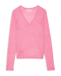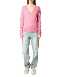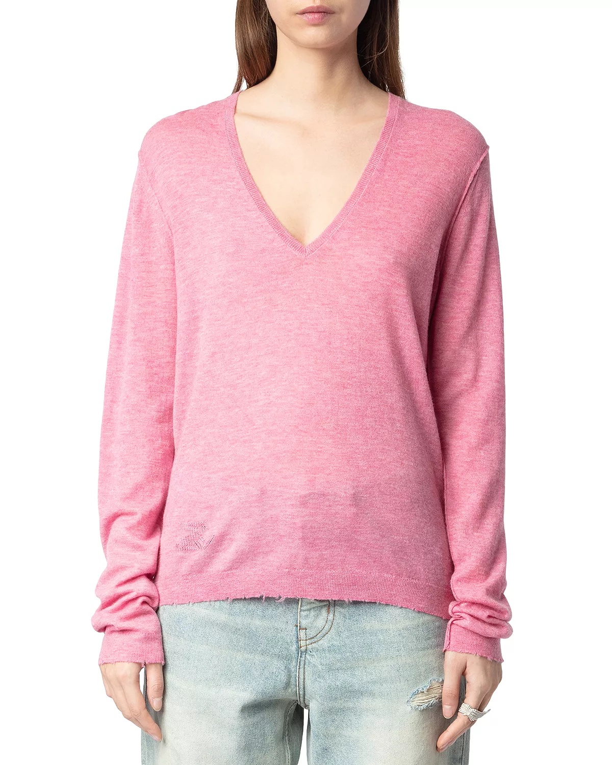 SIZE & FIT - Fits true to size, order your normal size PRODUCT DETAILS - V-neck - Long sleeves - Pullover style - Distressed edges - Embroidered wings at back - Imported Web ID: 5544798 MATERIAL & CARE - 100% cashmere - Machine wash or hand wash