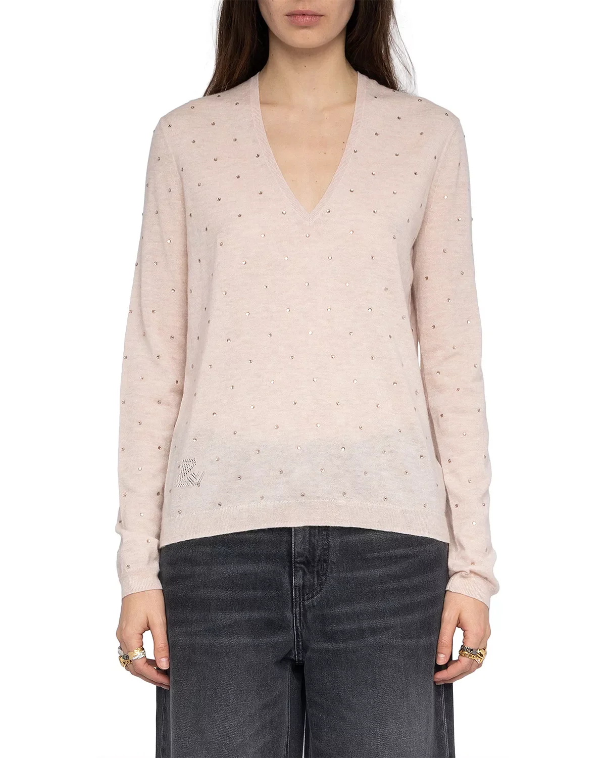SIZE & FIT - Fits true to size, order your normal size PRODUCT DETAILS - V-neck - Long sleeves - Pullover style - Rhinestone embellishments - Ribbed knit neck, cuffs and hem - Imported Web ID: 5777573 MATERIAL & CARE - 100% cashmere - Hand wash