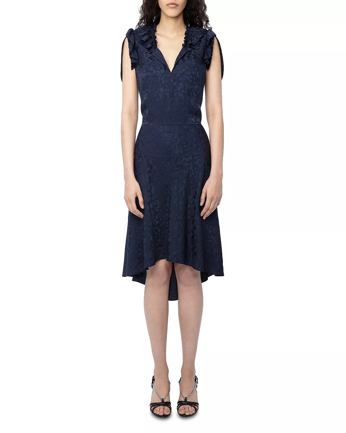SIZE & FIT - Fits true to size, order your normal size - Designed to hit at the knees - Model measurements: 5'10" height, 33.5" bust, 23.5" waist, 34.5" hips PRODUCT DETAILS - V-neck with ruffle trim - Pullover style - Short sleeves with ruffle trim and slit - Asymmetric hem - Imported Web ID: 4746780 MATERIAL & CARE - 100% silk - Hand or machine wash