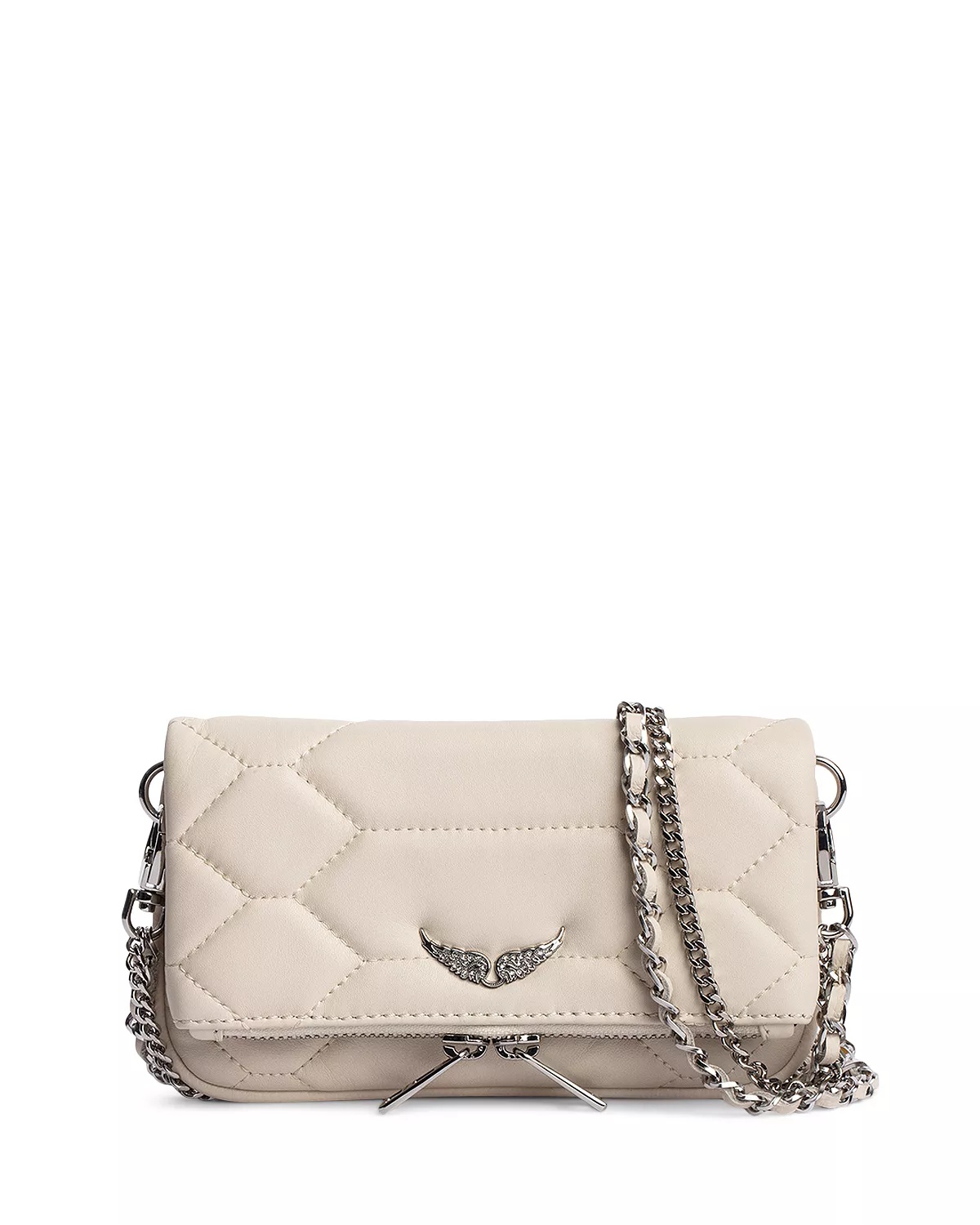 PRODUCT DETAILS - Chain & leather shoulder strap, 12.5" drop - Dimensions: 6.5"L x 1"W x 3.7"H - Flap closure - Exterior back zip pocket, zip flap pocket & interior slip pocket - Reptile-inspired quilted design - Wings charm on front - Lined - Main: leather; lining: 100% cotton - Made in India Web ID: 4068186