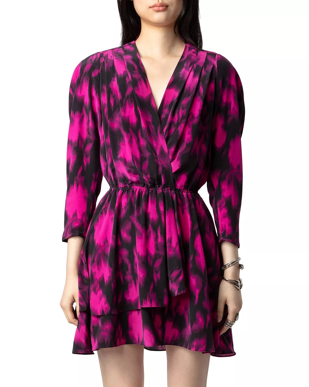 SIZE & FIT - Fits true to size, order your normal size - Designed for a mini length PRODUCT DETAILS - V-neck - Three-quarter length sleeves - Pleated detail at shoulder seams - Pullover style - Elasticized waist - Draped asymmetrical skirt - Allover floral print - Lined - Please note that this dress will be delivered with a black b-tag attached, with instructions for removal included. If the b-tag is removed, the dress cannot be returned. - Imported Web ID: 5118198 MATERIAL & CARE - 100% viscose - Machine wash or hand wash