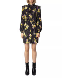 SIZE & FIT - Fits true to size, order your normal size - Designed to hit above the knees PRODUCT DETAILS - Tied collar - Long sleeves - Pullover style - Black crepe fabric, Yoko floral print - Please note that this dress will be delivered with a black b-tag attached, with instructions for removal included. If the b-tag is removed, the dress cannot be returned. - Imported Web ID: 5381523 MATERIAL & CARE - 100% viscose - Hand wash or machine wash