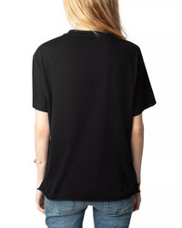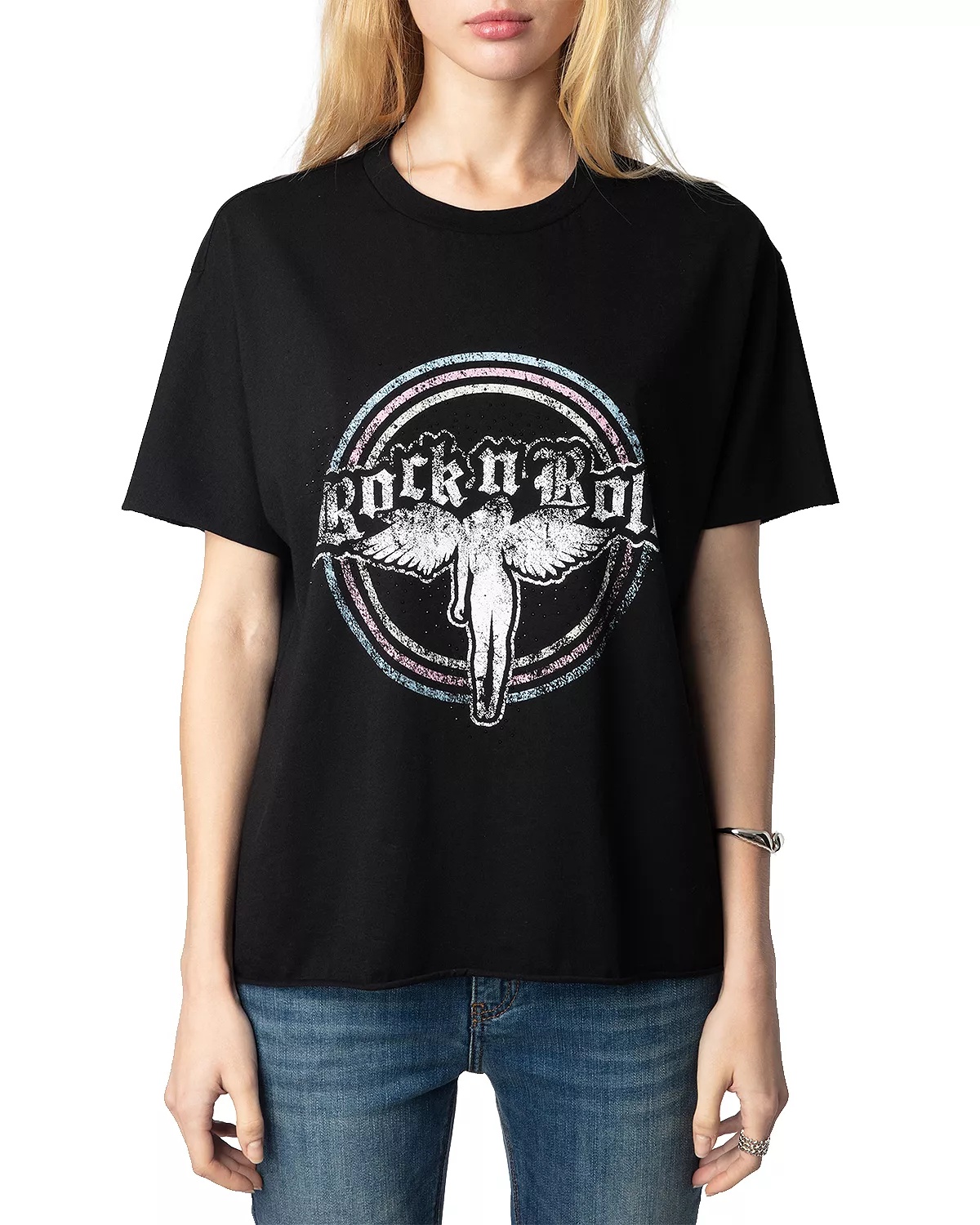 SIZE & FIT - Fits true to size, order your normal size - Designed for an oversized fit PRODUCT DETAILS - Crewneck - Short sleeves - Pullover style - Rhinestone-embellished "rock 'n roll" graphic at front - Made in Portugal Web ID: 5381318 MATERIAL & CARE - 100% cotton - Machine wash