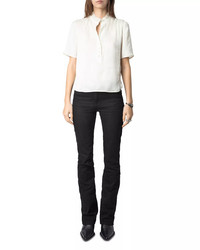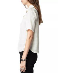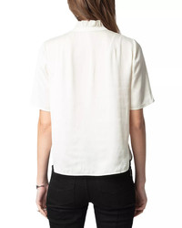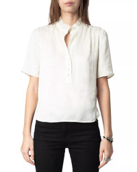 SIZE & FIT - Fits true to size, order your normal size; if between sizes, order one size up PRODUCT DETAILS - Ruffled round neck - Short sleeves - Partial button closures at front - Satin - Imported Web ID: 5381600 MATERIAL & CARE - 100% polyester - Hand wash or machine wash