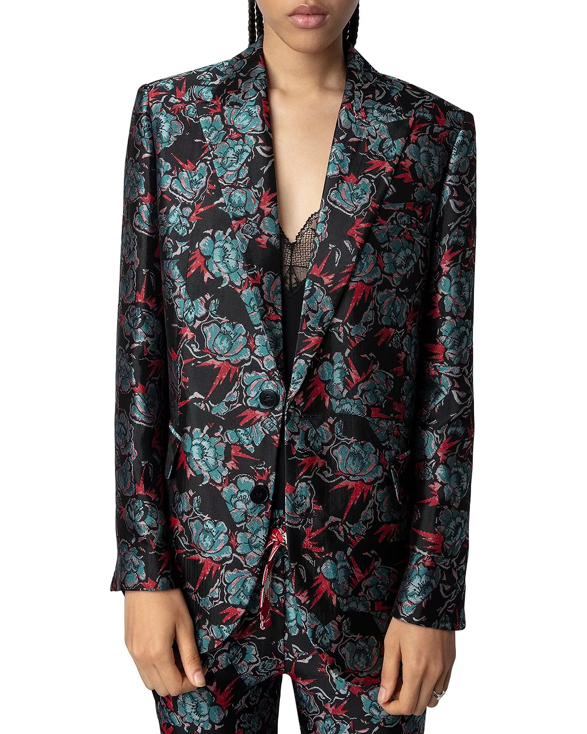 SIZE & FIT - Fits true to size, order your normal size - Model measurements: 5'10" height, 33.5" bust, 23.5" waist, 34.5" hips, wearing a size FR 36 or US 4 PRODUCT DETAILS - Peak lapels - Button front closures - Long sleeves - Floral jacquard fabric - Lined - Imported Web ID: 4746762 MATERIAL & CARE - 64% viscose/36% acetate; lining: 100% viscose - Dry clean