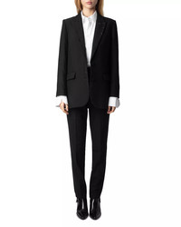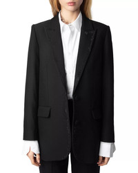SIZE & FIT - Fits true to size, order your normal size - Designed for a relaxed fit PRODUCT DETAILS - Peak lapel - Button front closures - Long sleeves with buttons at cuffs - Rhinestone embellishments at collar and cuffs - Lined - Imported Web ID: 5381503 MATERIAL & CARE - 69% polyester/23% viscose/8% elastane; lining: 100% polyester - Dry clean
