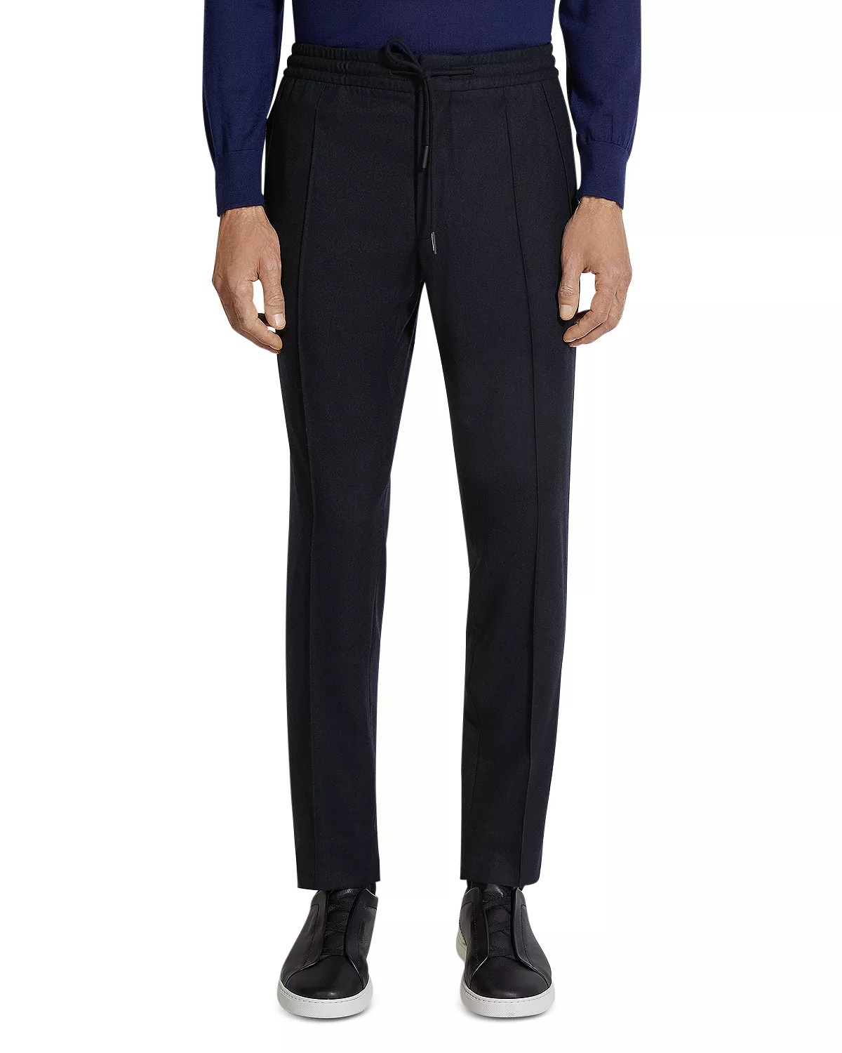 SIZE & FIT - Fits true to size, order your normal size - Designed for a regular fit PRODUCT DETAILS - Elastic waistband with drawstring - Two side hand pockets, two back welt pockets - Front seam - Imported Web ID: 5257298 MATERIAL & CARE - 89% wool/6% silk/5% cashmere - Dry clean