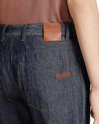 DARK BLUE RINSE-WASHED COTTON AND LINEN ROCCIA JEANS