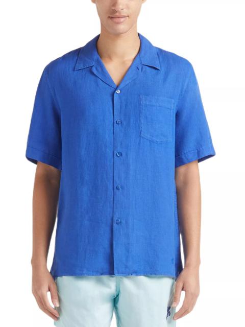 Short Sleeved Solid Linen Shirt