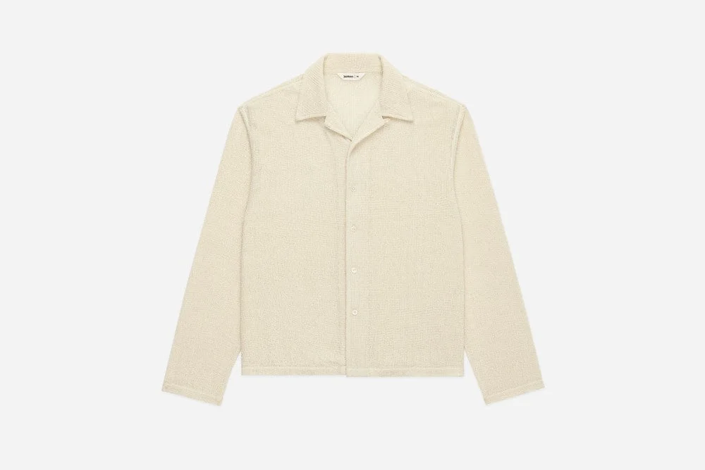 Our Loop Collar Shirt is modeled after vintage midcentury open collar shirts and features a slightly boxier cut than some of our other shirts Information This season, 3sixteen had an open weave cotton mesh fabric custom woven for us. The fabric is airy, breathable, and very comfortable. Details - 100% Cotton - Single front chest pocket - Open collar - Mother of pearl buttons - Made in India