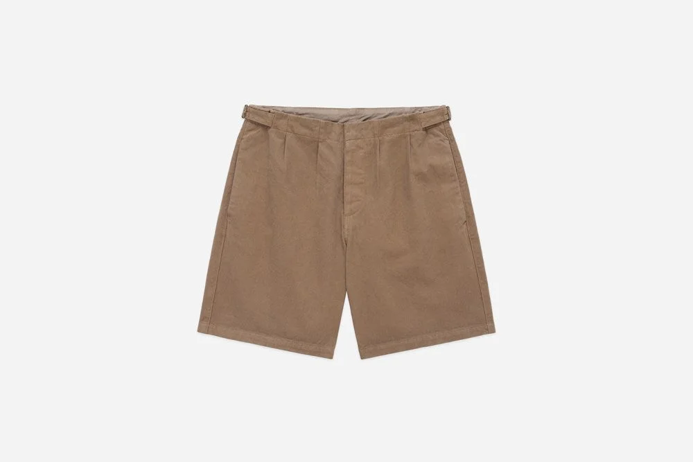 Information Inspired by vintage ghurka shorts and safari shorts, they feature a double pleated front and a wide cut. Instead of the usual front buckle construction found on traditional ghurka shorts, 3sixteen opted for two side buckles and a hook and waistband closure. The shorts are sewn up in a heavyweight cotton twill and then garment dyed. Details - 100% cotton - Relaxed fit - Rear welt pockets - Side buckle waist adjustment - Made in Portugal