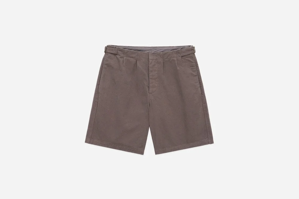 Information Inspired by vintage ghurka shorts and safari shorts, they feature a double pleated front and a wide cut. Instead of the usual front buckle construction found on traditional ghurka shorts, 3sixteen opted for two side buckles and a hook and waistband closure. The shorts are sewn up in a heavyweight cotton twill and then garment dyed. Details - 100% cotton - Relaxed fit - Rear welt pockets - Side buckle waist adjustment - Made in Portugal