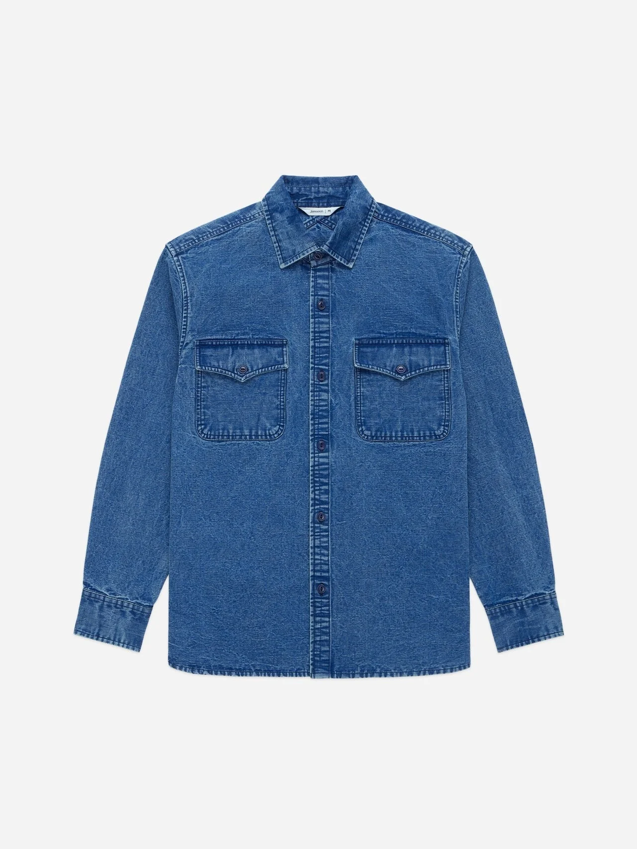 Description The USN Overshirt is a shirt jacket style modeled after traditional standard issue 1940s US Navy overshirts. This season's USN Overshirt features a 10.5 oz Japanese indigo canvas woven by Yamaashi Orimono that's been processed with a heavy stonewash treatment to bring out the highs and lows of the deep indigo yarns. The shirt is finished with military-inspired corozo fisheye buttons. Details - 10.5 oz Japanese Indigo Canvas - 100% Cotton - Crossed back yoke - Stonewashed finish - Made in India