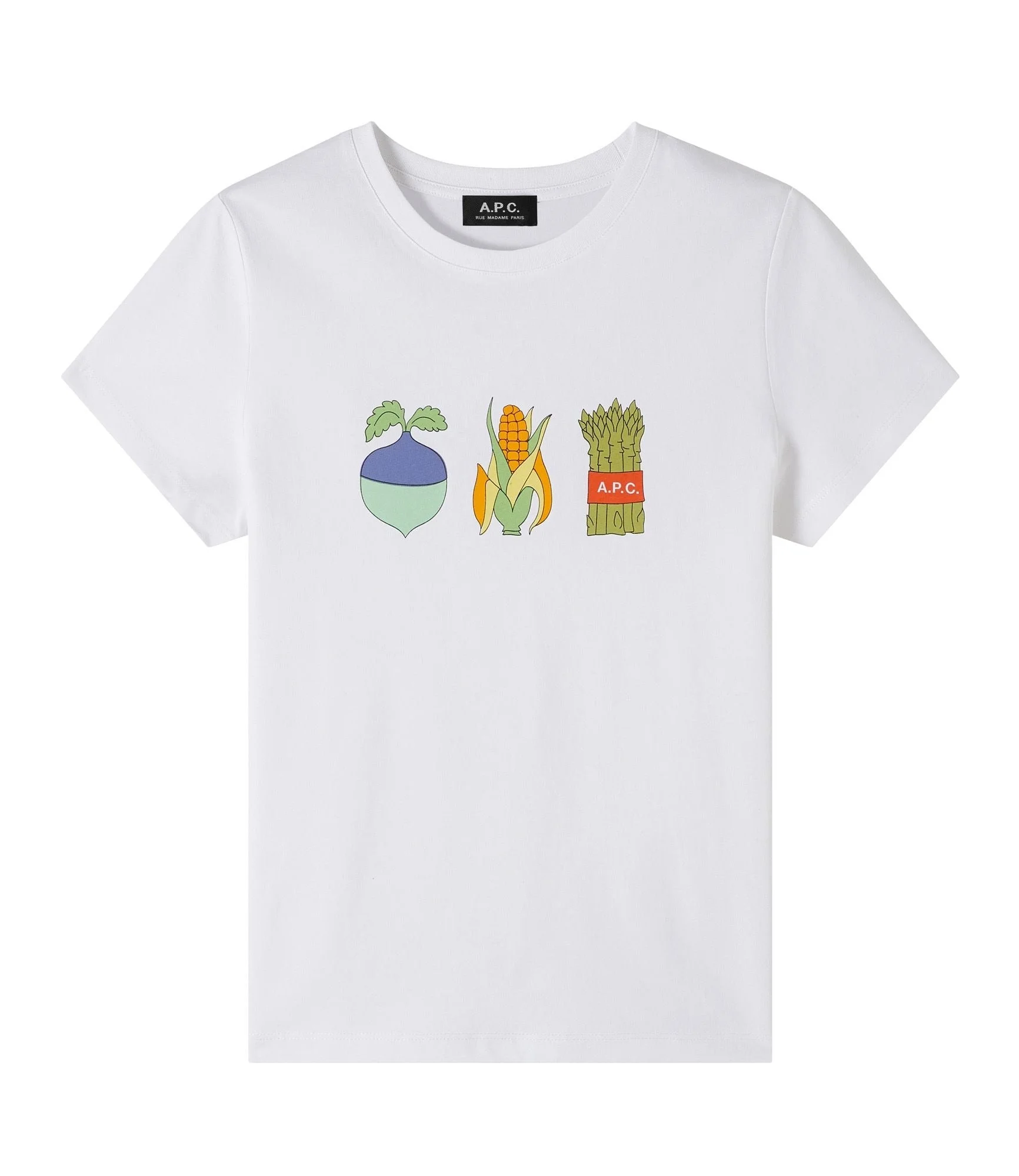 T-shirt in organic cotton with vegetable print. - Heavyweight cotton (180 g). - Straight cut. - Crew neck. - Three vegetables silkscreened on front. - 100% organic cotton. Details - 100% cotton. - Made in Turkey. - Machine wash cold (30°C), inside-out.