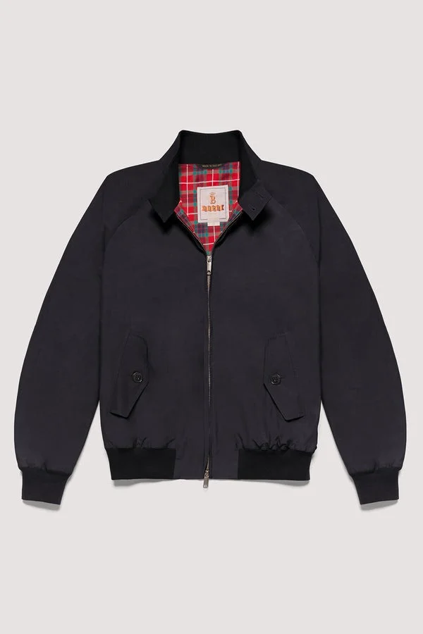 There are few garments more quintessentially British than the Baracuta G9 Jacket, which is the one and only, original Harrington Jacket. It's a true cross-cultural piece, and to this day it has been designed and made in the UK since 1937. It's lined with the iconic Fraser Tartan lining, made from breathable Coolmax® fabric. Other features include, the classic two-button collar, deep pockets made to hold two golf balls, ribbed cuffs, and hem. Finished off with the unmistakable umbrella back yoke designed to keep rainwater at bay, Baracuta's got your back covered - literally! Made in the UK from the get-go and created for unpredictable British weather, it can also be worn in any setting, by any person and in any season. Material Shell: 58% Polyester 42% Cotton; Lining: 80% Cotton 20% Polyester; Lining 2: 100% Polyester Care & Wash Machine wash at max 30°c delicate cycle; Do not bleach; Do not tumble dry; cool iron; dry clean professionally; wash separately. Detail - Umbrella back yoke - Ribbed tone-on-tone Dog Ear collar with a double button closure in personalised Baracuta buttons - Two-way logoed zip - Raglan sleeves for extra movement - Two diagonal frontal pockets with a single button closure - Ribbed tone-on-tone cuffs and waistband for extra protection - Internal pocket in external cloth with personalised Baracuta button closure - Fraser Tartan lining in 100% breathable Coolmax® Cotton - Made in Baracuta's famous cotton blend Baracuta Cloth - Coated in a WR treatment making it water repellent - Slim Fit - Made in the UK