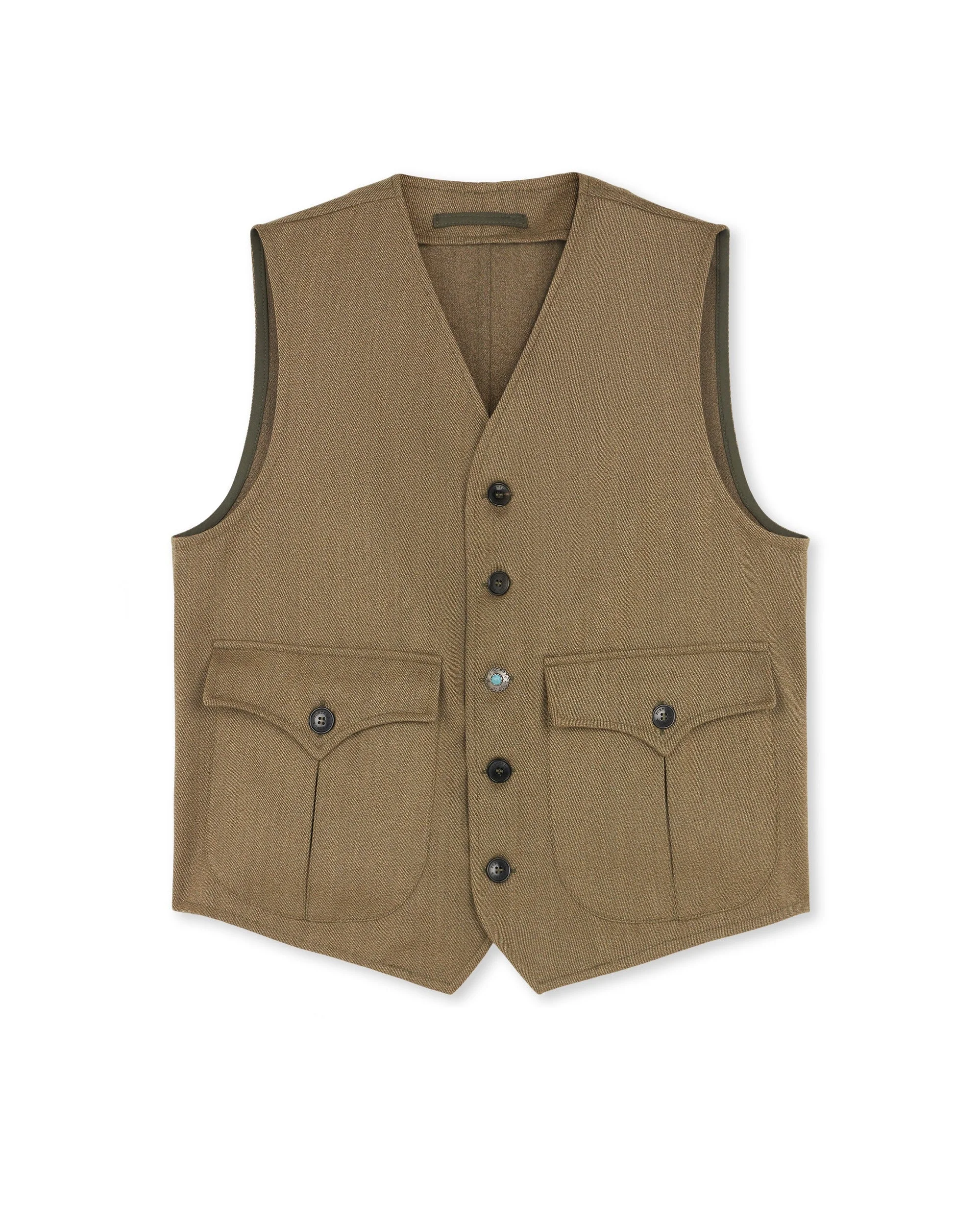 COUNTRY-INSPIRED WAISTCOAT IN WOOL FABRIC. LINED WITH CHECKED COTTON FLANNEL – PATCH POCKETS WITH FLAPS – ADJUSTABLE MARTINGALE AT THE BACK – FOUR-HOLE LOGO BUTTONS