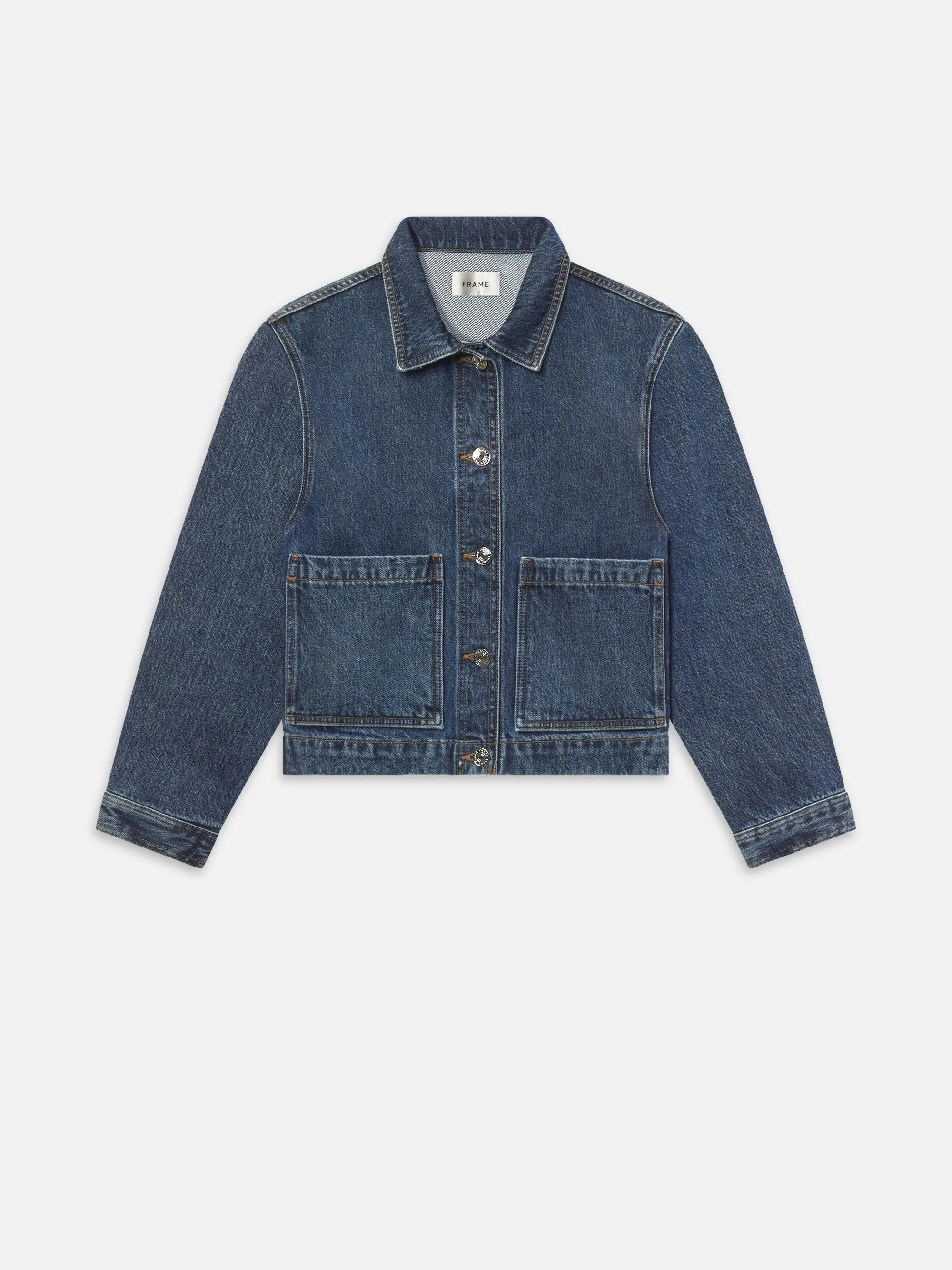 Tell your friends—it has pockets. This chic denim jacket comes equipped with everyone's favorite feature: two oversized patch pockets on either side. This piece is as versatile as your favorite pair of denim, featuring a crisp collar and a rich shade of blue. Luxury denim made from 100% premium cotton conforms to your figure as it breaks in for a highly personal, incredibly flattering fit. Detail - Machine Wash Cold - 100% Regenerative Cotton