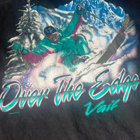 1992 “Over the Edge” Vail, Colorado Longsleeve mock neck shirt Size large Single stitch Made in usa Pit to pit 22” Top to bottom 27”