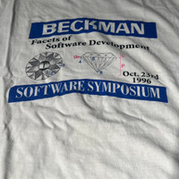 90s Beckmann Software Symposium tee Tagged size XL (fits boxy large) Pit to pit 23” Top to bottom 27” Single stitch Made in usa Some small stain shown in last photo