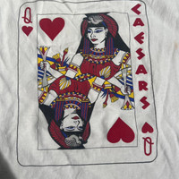 90s Caesars LAS Vegas Queen of Hearts Tee Pit-pit 23” Top-bottom 27” Single stitch Stained on the pits