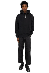 - Heavy weight fleece material made in Japan using rare old-fashioned knitting machine "Azuma knitting machine" - The Azuma knitting machine is one of the early knitting machines in the 1970s, when loop knitting machines were transformed into high-speed knitting machines. The knitting speed is extremely slow, and it is a knitting machine with low productivity that can only knit about 1 to 2 rolls per day. Because the speed is gradual, the fabric feels soft. - Color: Black - 100% cotton - Made in Japan - Model is 6'2 wearing a size L