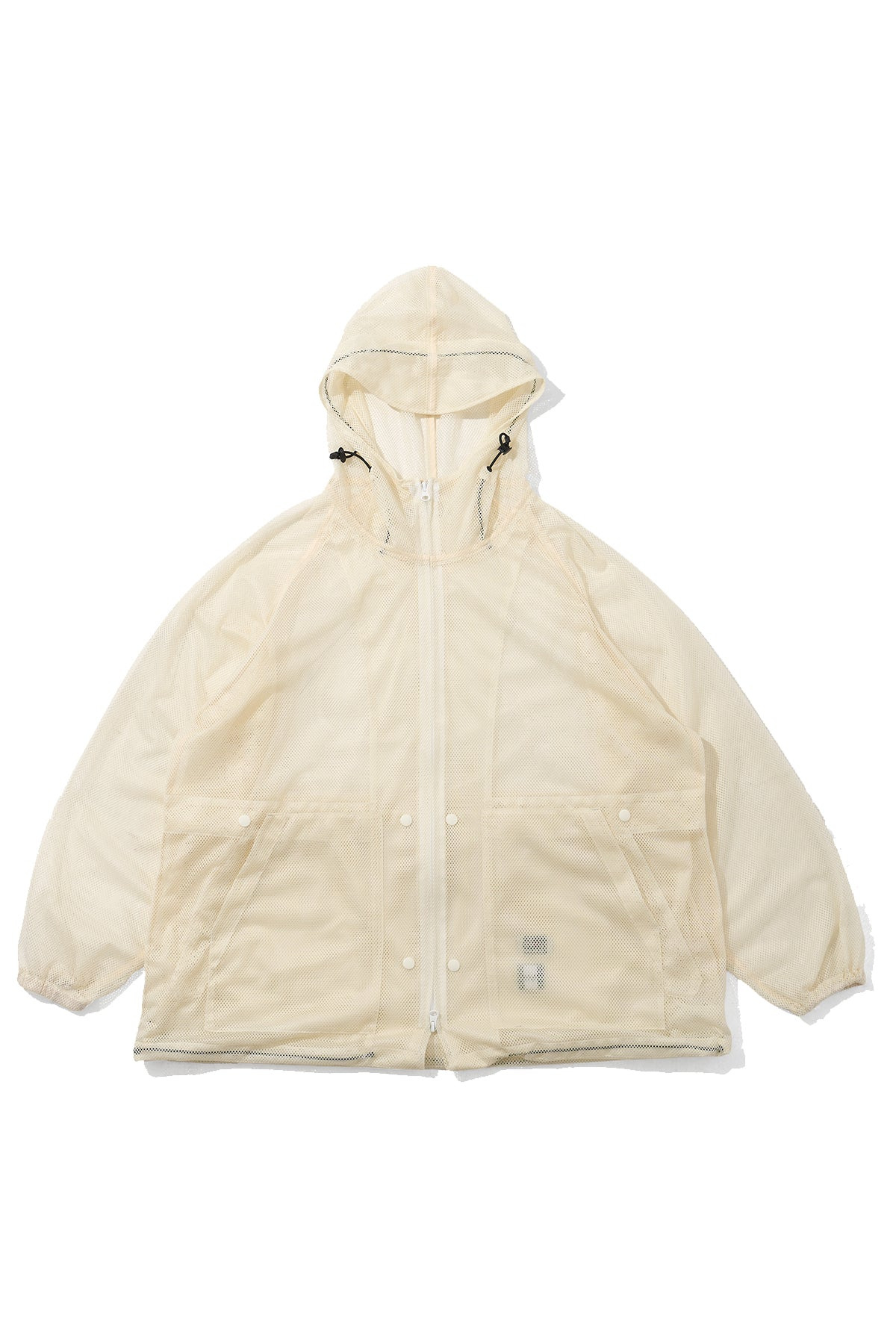 Special Engineered Garments collaboration partnered with our friend store, Nepenthes NY. The Mesh Parka is a bold new addition to the EG lineup—a translucent jacket/coat hybrid, introducing a level of sheerness not previously explored in our collections. It can be worn at its standard length or extended into a long coat by releasing the concealed interior snaps. Designed for versatility, it layers effortlessly over a T-shirt and can be worn even in the height of summer. The degree of transparency differs by color, encouraging exploration of both fabric and tone. Exceptionally breathable, the Mesh Parka is not only visually striking but also practical—ideal for warm climates, outdoor gatherings, or mosquito-prone environments where coverage and airflow are equally essential - Polyester mesh - Color: Natural - Made in USA - Model is 6'2 wearing a size M