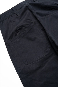 Wide-silhouette deck pants based on trousers from the WWI era and featuring large front pockets that straddle the side seams. From last season, we’ve been using a rare twill fabric called “Unsai” weave that can only be produced in Japan and has a very high density and diagonal elasticity that makes it tougher than it actually looks. This material has traditionally been used in Japan for such varied items as the soles of tabi socks, soy sauce strainers, various canvases, and the loincloths, or “mawashi”, worn by sumo wrestlers during training.