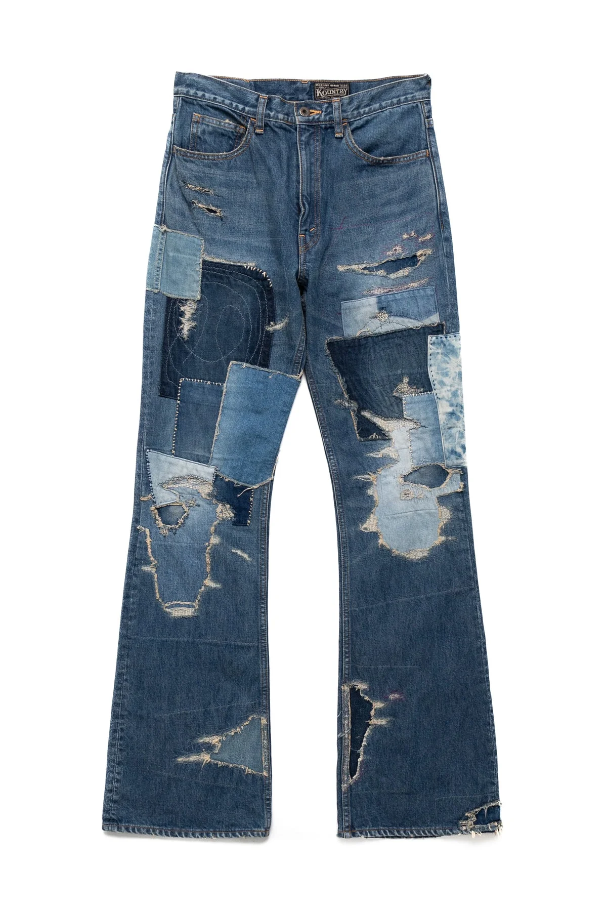 - Color: Indigo - Distressed and patchwork of fabrics with various textures - Not too flare so that easy to wear - Zipper fly - One wash - 100% Cotton - Please note that there are individual differences. - Any tears or damage caused by processing are intentional in the design and are not product defects. - Made in Japan - Style #: K2309LP034 - Model is 6'2 wearing a size 32