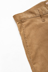 - Color: Beige - Zipper on the fly - 8 wale corduroy - In addition to the regular hip pockets, the back has a single beaded pocket with a button. - 100% cotton - Made in Japan - Model is 6'2 wearing a size 3