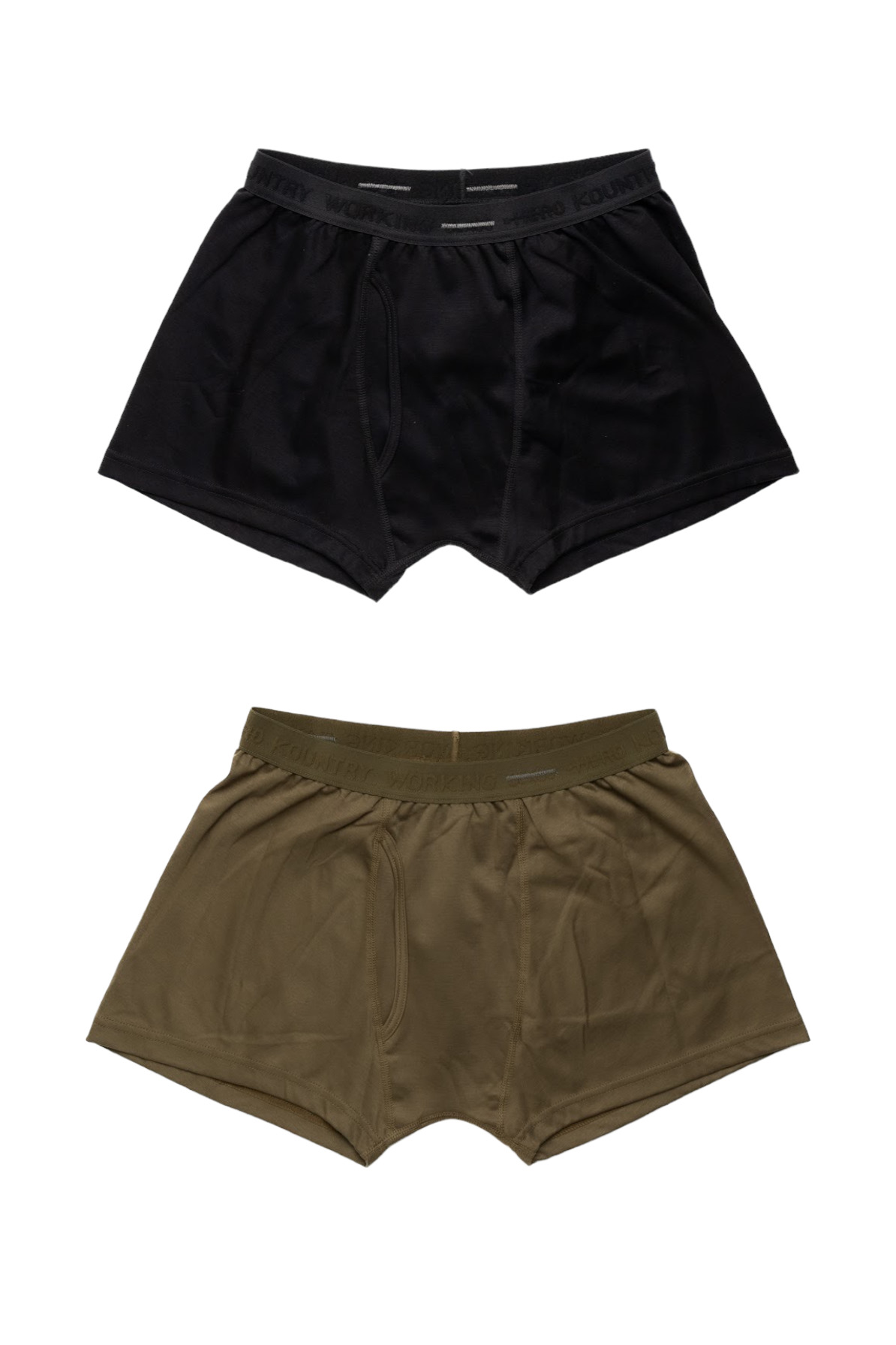 ALL SALES ARE FINAL - Trunks made of thick and stretchy cotton fabric - Comfortable to wear - 2 color set of Khaki and Black - 100% cotton - Waist: 76% polyester, 12% nylon, 12% polyurethane - Made in Japan - Style #: K2309XG520