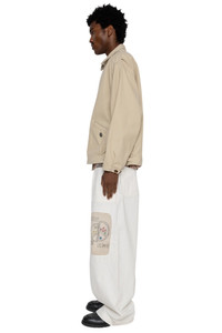 - Loose fit fatigue pants with patches - Distressed (breaks and damages are intentional, not a defect) - Color: Ecru - 100% Cotton - Made in Japan - Model is 6'2 wearing a size 3