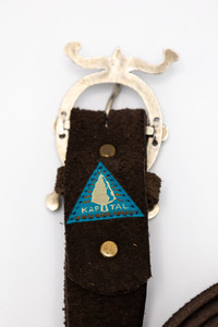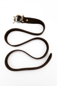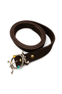 - A long sized leather belt with a delicate pattern and colorful studded buckle on a soft suede fabric. - This product uses natural materials to value the characteristics and unique texture. Therefore, there are some variations in expression and size. - Made in Japan - Style #: K2303XG509