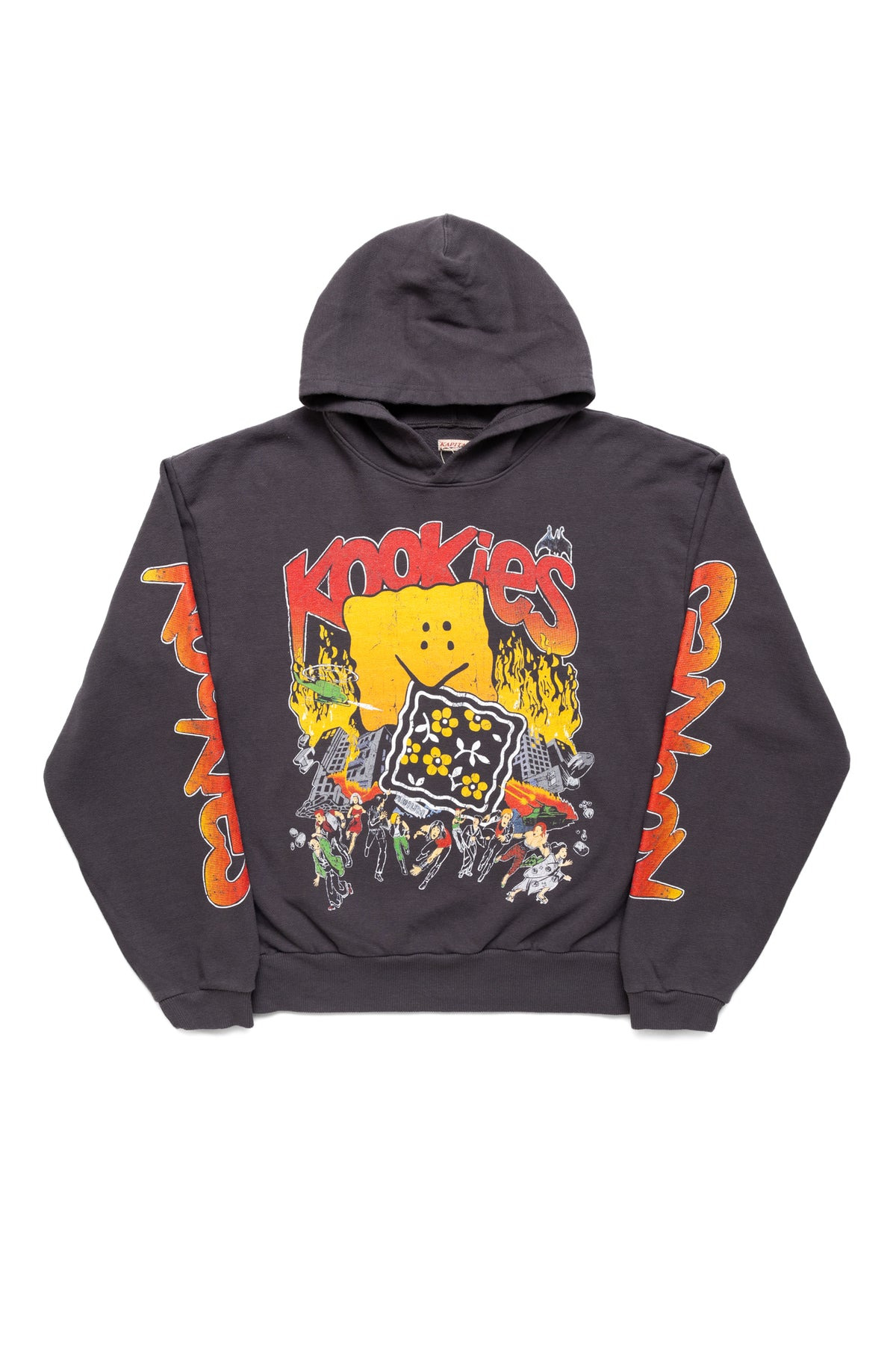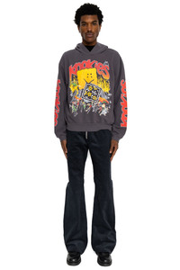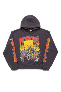 - A hooded sweatshirt inspired by vintage band T-shirts. - RAINBOWY turned into a cookie - Color: Ink Black - 100% cotton - Made in Japan - Model is 6'2 wearing a size 3