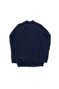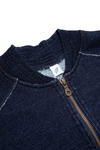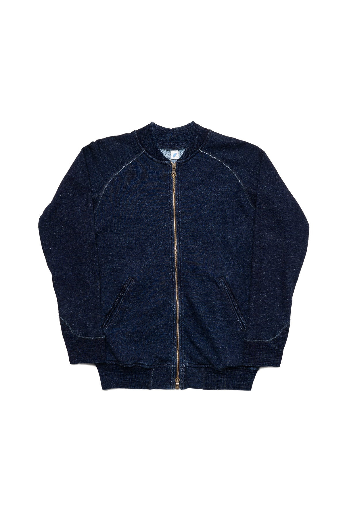 This soft to the touch proprietary indigo yarn-dyed sweatshirt features two-way zippers and hip pockets. - 100% cotton - Rope Dyed Indigo yarns - Raglan sleeve design - Ribbed neckline, cuffs and hem - Two-way YKK Japan® Zipper - Paneled pit construction - Hip pockets - Embroidered Indigo Leaf Logo