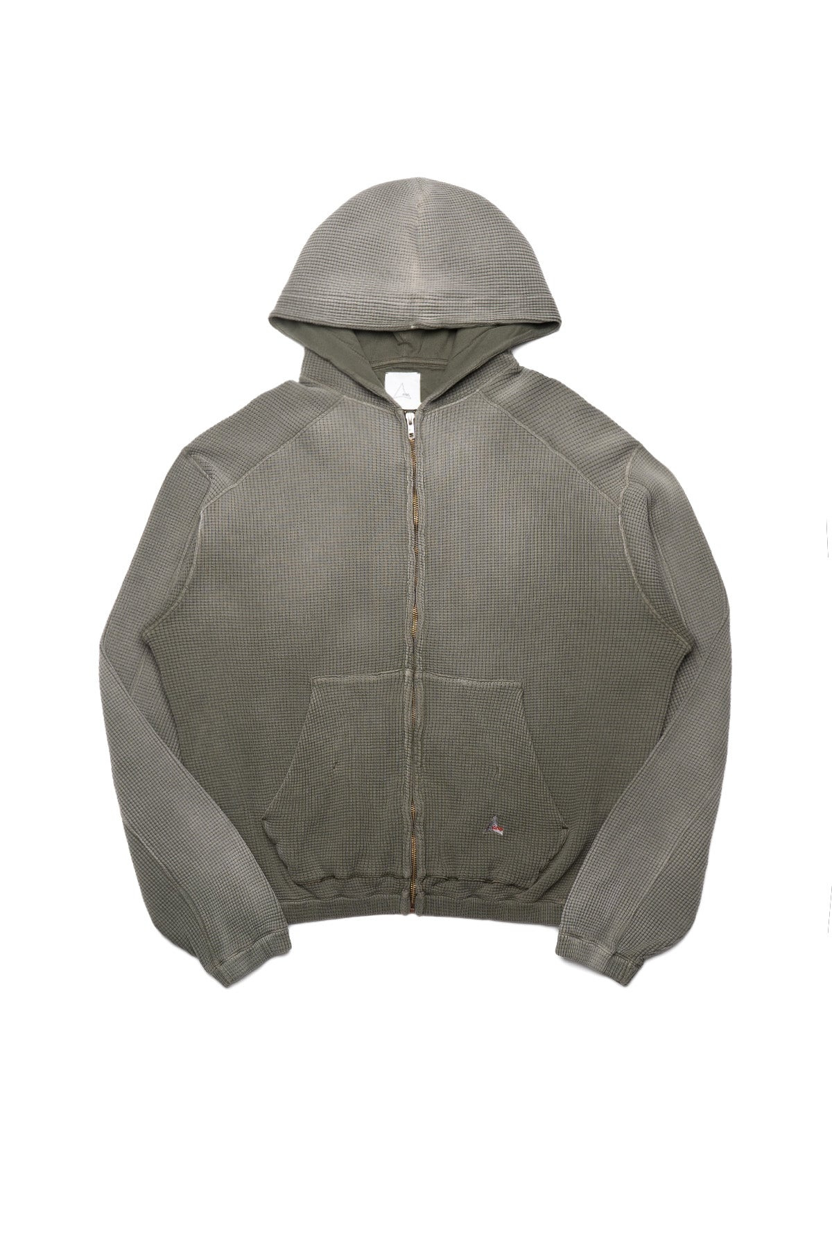 Bee Sun Faded Waffle Zip Up Hoodie - Olive