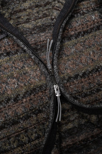 Fair Isle Felted Knit Zip Up Hoodie - Olive