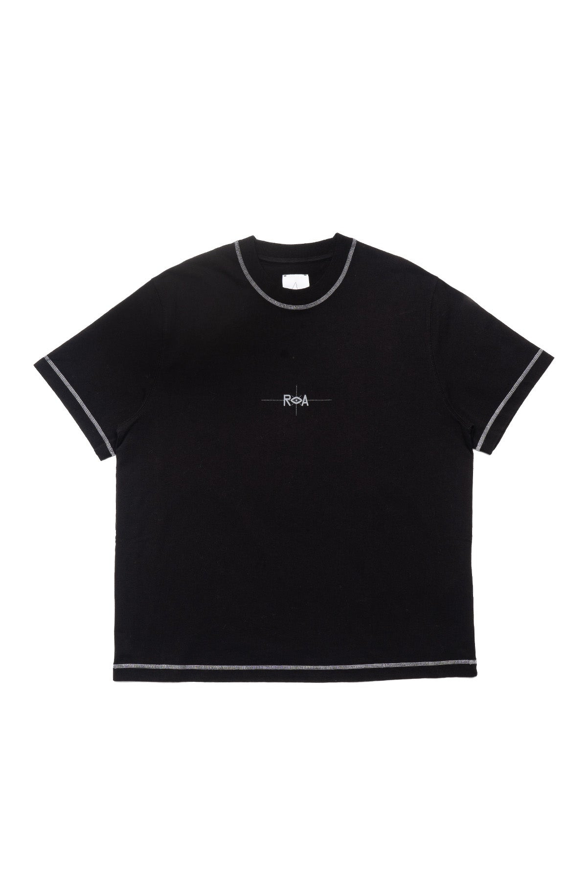 Graphic t-shirt made of heavy-weight cotton jersey, black color. Boxy and comfortable fit. Printed contrasting logo on the front, and printed design on the back in silver and pewter color. Ribbed collar. - Color: Black - Boxy Fit - Ribbed Collar - 100% Cotton - Heavy-weight organic cotton jersey - Made in Portugal