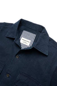 This original "kokiran" military shirt is made of a high-gauge cotton ripstop fabric using yarns dyed with synthetic and natural indigo. "Kokiran" is a very deep blue and is a color loved by the common people since the Heian period (794 - 1180). At that time, the color was actually a combination of indigo and yellow known as "kihada", and we've reproduced this color here through a special process that utilizes modern dyes. - High-gauge Cotton Heavy Ripstop - Indigo x indigo dyed - "hi no maru" rising sun name - Shell buttons - Single stitch sewing - Made in Japan