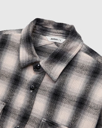 The Crosscut Flannel by 3sixteen stands as the brand's hallmark flannel shirt, distinguished by its custom woven fabrics and cross-stitched yoke. This version uses a Japanese flannel fabric woven with a loose weave and coarse yarn that gives the fabric beautiful variation and a textured, dry-hand feel. Fitted with flap pockets at the chest, a pointed collar, and black fisheye buttons. - Regular fit - Medium-weight Japanese flannel fabric - Signature cross-stitched back yoke - Flap chest pockets - Black enamel coated metal fisheye buttons - 100% cotton - Made in India Founded in 2003 in New York City's Lower East Side, 3sixteen aims to create collections that demonstrate longevity in both design and construction by producing clothing that will hold up to extensive wear and remain relevant season after season. The brand's aesthetic is built upon utilitarian silhouettes from decades past that are updated with premium materials and modern fits. The majority of the collection is handsewn in the USA of the finest fabrics, ensuring that every piece has a compelling story to tell.