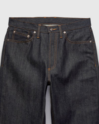 3sixteen's signature 14.5oz indigo selvedge denim fabric is woven in Okayama, Japan. The fabric has been skewed and singed, creating a clean and uniform look from a distance, and a rough and rugged texture up close. Additionally, the weft on the 14.5oz fabric has been brushed, giving the denim an extremely soft feel from day one. - 14.5oz sanforized selvedge denim fabric - Brushed weft for soft feel and easy break-in - 3sixteen's Relaxed Straight fit features a high rise, a roomy thigh, and a wide leg for maximum comfort - Branded suede leather patch - Chainstiched hems and waistband - Belt loops sewn into the waist band - Gun metal finish custom engraved rivets and buttons - Red and white selvedge - Hidden selvedge coin pocket - Selvedge detail along button fly - 100% cotton - Made in USA (San Francisco, CA) Founded in 2003 in New York City's Lower East Side, 3sixteen aims to create collections that demonstrate longevity in both design and construction by producing clothing that will hold up to extensive wear and remain relevant season after season. The brand's aesthetic is built upon utilitarian silhouettes from decades past that are updated with premium materials and modern fits. The majority of the collection is handsewn in the USA of the finest fabrics, ensuring that every piece has a compelling story to tell.