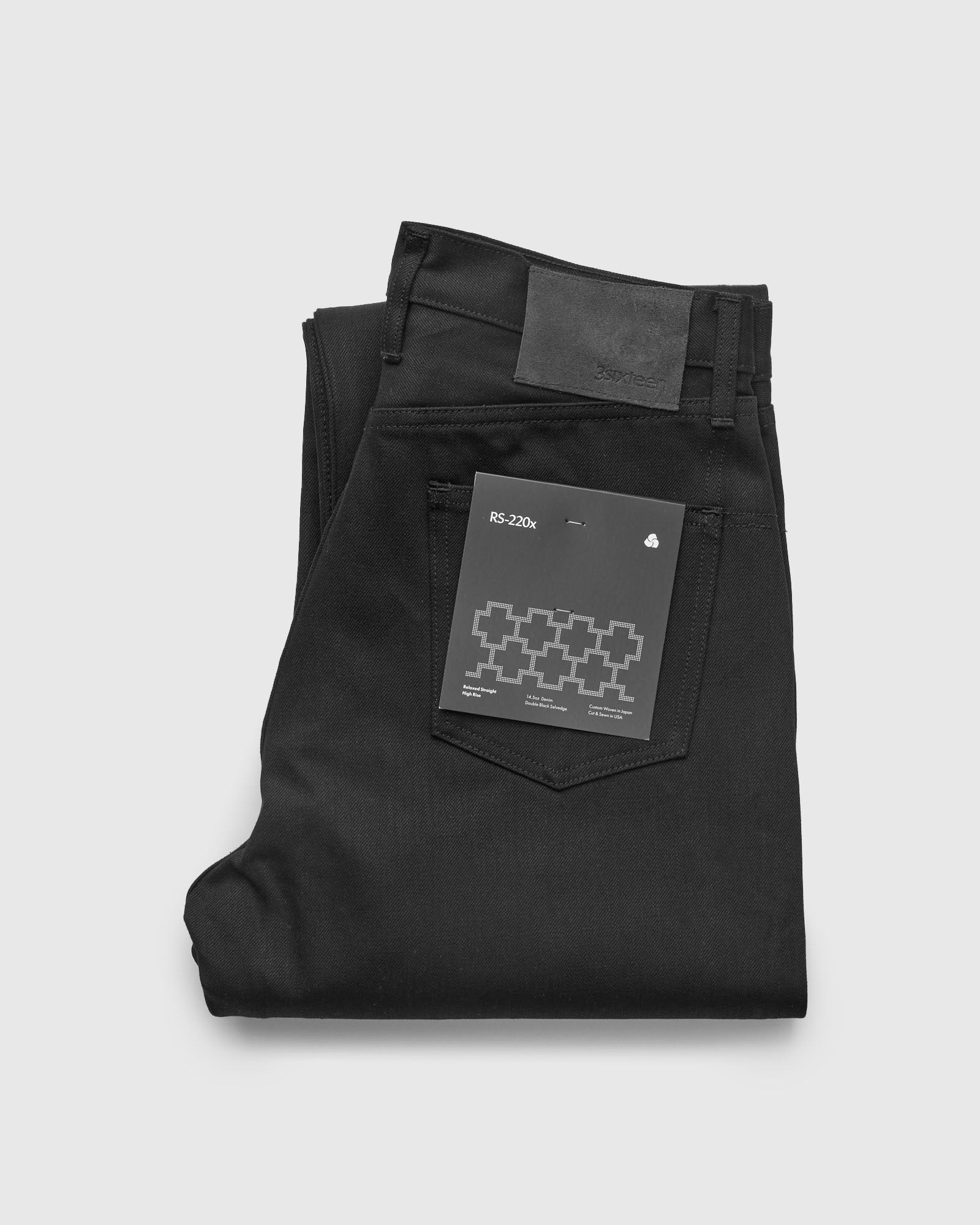3sixteen's signature 14.5oz black selvedge denim fabric is woven in Okayama, Japan. The fabric has been skewed and singed, creating a clean and uniform look from a distance, and a rough and rugged texture up close. Additionally, the weft on the 14.5oz fabric has been brushed, giving the denim an extremely soft feel from day one. - 14.5oz sanforized selvedge denim fabric - Brushed weft for soft feel and easy break-in - 3sixteen's Relaxed Straight fit features a high rise, a roomy thigh, and a wide leg for maximum comfort - Branded suede leather patch - Chainstiched hems and waistband - Belt loops sewn into the waist band - Gun metal finish custom engraved rivets and buttons - Red and white selvedge - Hidden selvedge coin pocket - Selvedge detail along button fly - 100% cotton - Made in USA (San Francisco, CA) Founded in 2003 in New York City's Lower East Side, 3sixteen aims to create collections that demonstrate longevity in both design and construction by producing clothing that will hold up to extensive wear and remain relevant season after season. The brand's aesthetic is built upon utilitarian silhouettes from decades past that are updated with premium materials and modern fits. The majority of the collection is handsewn in the USA of the finest fabrics, ensuring that every piece has a compelling story to tell.