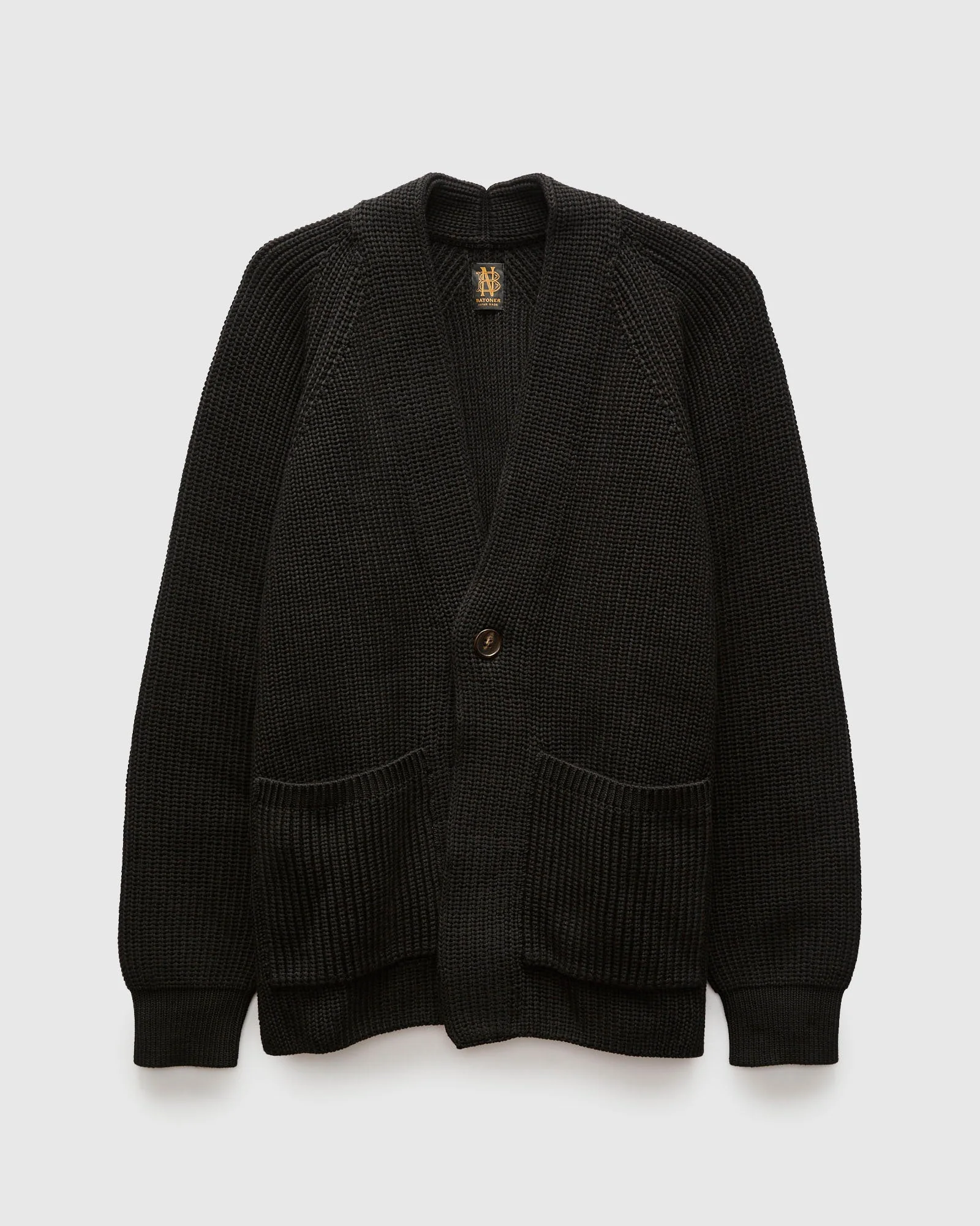 Batoner's Signature Knit series represents decades of Japanese knitwear expertise. Knit using hand-picked Giza cotton yarns, Batoner uses a specialized “SiroSpun” ring-spinning machines to produce the yarns for their Signature Knit sweaters. The SiroSpun method creates a high-tensile yarn that is stronger, smoother, and more uniform than conventional single-ply yarns. The resulting fabric resists sagging and pilling while maintaining a refined, sleek texture. Knit at a loose gauge, the sweater offers a natural stretch and substantial weight. The One Button Cardigan features a streamlined v-neck collar, one-button placket complete with handwarmer pockets at the waist. - Regular fit - Loose gauge knit - SiroSpun yarn - Hand-picked Giza cotton - Raglan sleeves - Handwarmer pockets - 100% cotton - Made in Japan